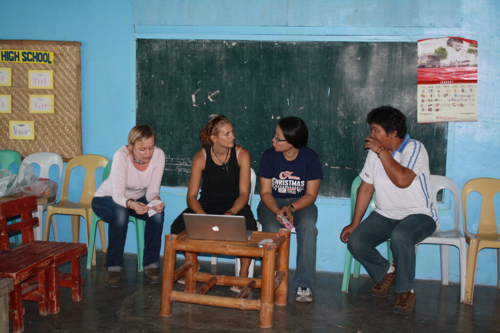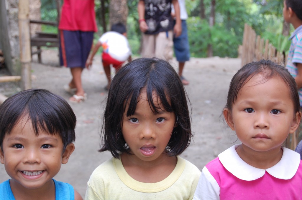 And a BIG smile. It was 6:45 in the morning and I had just crawled out from under my mosquito net that was attached to tiny children’s chairs, grabbed my toothbrush and water bottle and opened the door of the day care centre we had slept in. And there she stood, this white-haired lady. Holding the biggest fruit I had ever seen, smiling at me and saying “Maayong aga, good morning! Jack fruit!” Was it perfect timing or had she been standing there waiting for us to open the door? I don’t know. But naturally we let her in. The lady knelt down on the ground, and chopped away with the large knife they also use to open Buko (coconuts) with. Buko (coconuts) with. Jackfruit for breakfast!! Ramke and Simone crowded over her devouring every piece of Jackfruit as soon as it was liberated. One eats the soft little yellow pieces of fruit inside the big hard green shell of Jackfruit. It tastes sweet, a bit like vanilla, but has a vinegary kick…