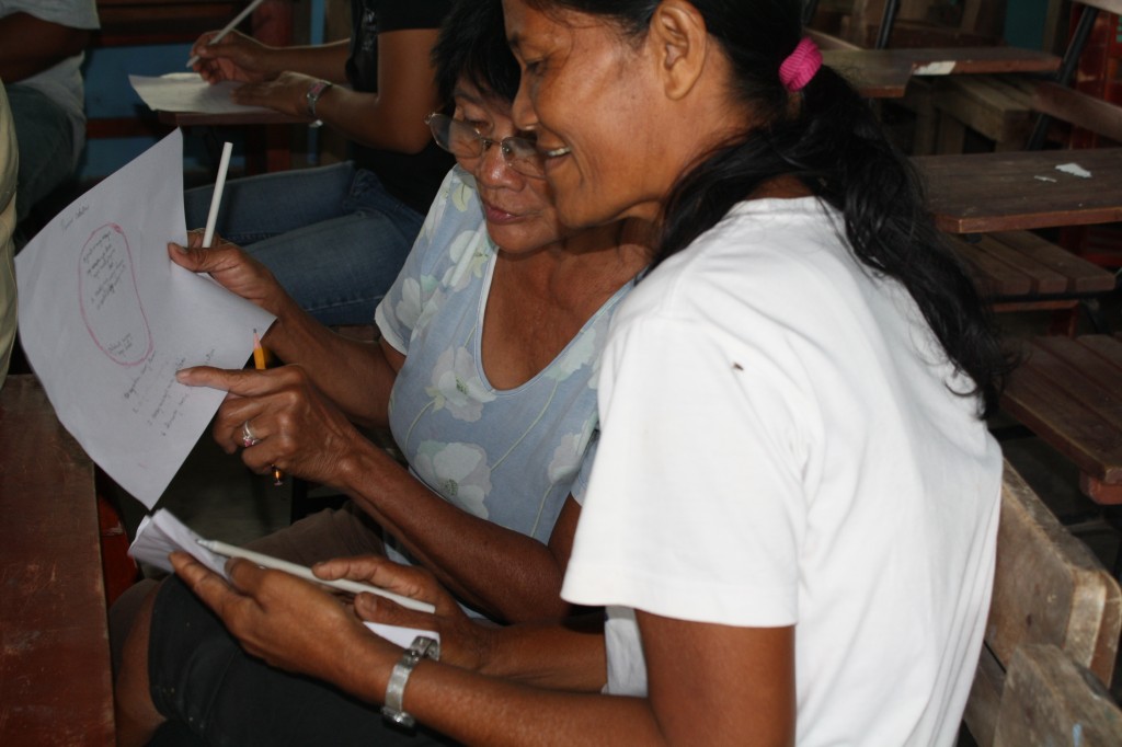 The workshops So the way the workshops run is that Simone talks and facilitates, Caryl Ann translates it all into Illongo (not only the language, but she also gives examples the community can relate to). The workshop is on ‘creative social entrepreneurship’; the basics of business, business with care – how to make myself a living that won’t harm me, my community, my culture or my environment. Simone uses creative moments, has people draw a lot, plays music etc. It is ambitious, but I think it is good. And from the reactions of the people attending, the basic message seems to come across. Yes, they agree that life in the busy city (which many aspire to) may not be better than living in nature where you, in fact, have it all. Honour your environment in your business, make THAT your business. I think we should ALL think about that.
